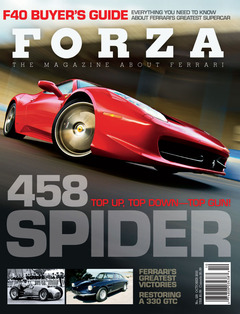 During my time with the 458 Spider, I gave some serious thought to its fixed-roof sibling, the Italia. In our first drive of the open car [“Sky’s the Limit,” FORZA #115], we outlined the differences between the two models, some of which I’ll repeat here.